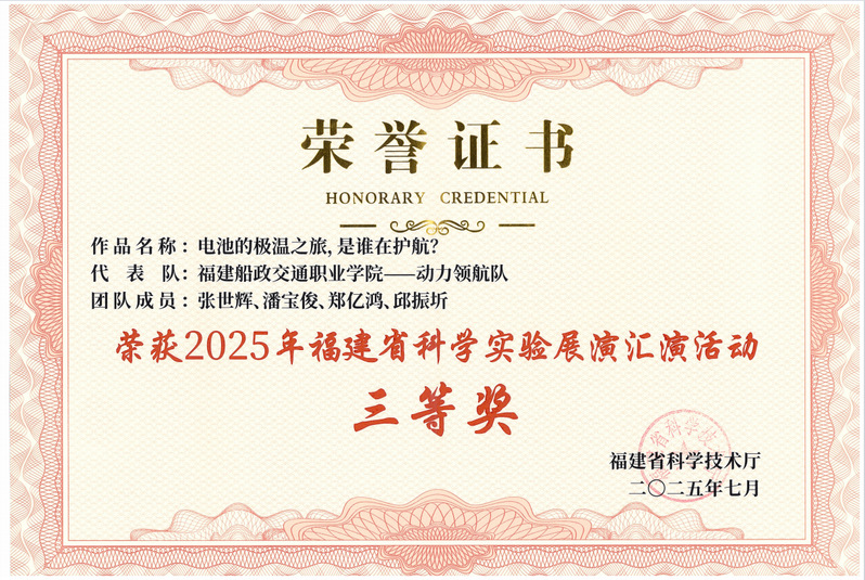 近日,由福建省科學(xué)技術(shù)廳主辦的2025年福建省科學(xué)實(shí)驗(yàn)展演匯演活動(dòng)在泉州盛大舉行。本次活動(dòng)以“矢志創(chuàng)新發(fā)展建設(shè)科技強(qiáng)國”為主題,吸引了來自全省33支精英隊(duì)伍同場(chǎng)競(jìng)技。經(jīng)過激烈角逐,我院選送的“電池的極溫之旅,是誰在護(hù)航?”和“KT板橋梁實(shí)驗(yàn)秀”作品分別獲得此次比賽三等獎(jiǎng)和優(yōu)秀獎(jiǎng)。