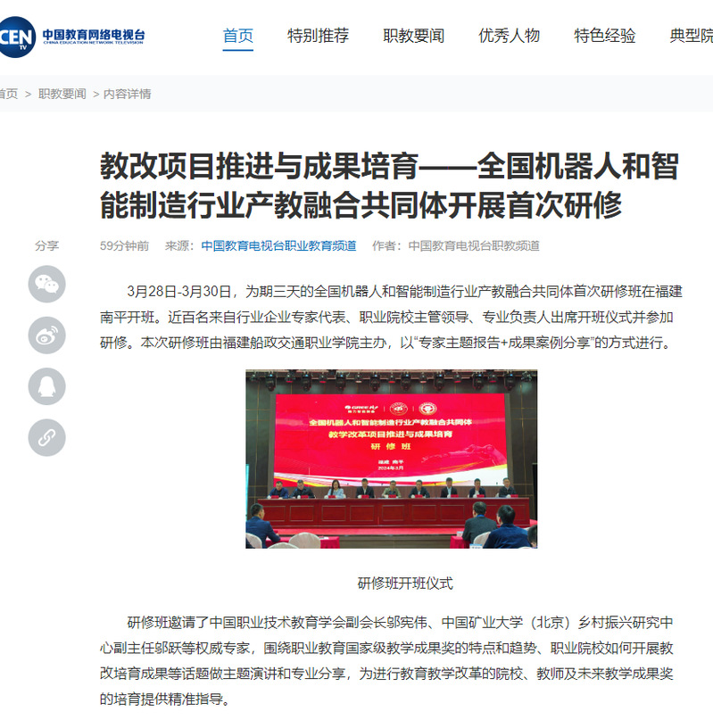 媒體聚焦|中國教育電視臺報道我院主辦全國機(jī)器人和智能制造行業(yè)產(chǎn)教融合共同體研修班