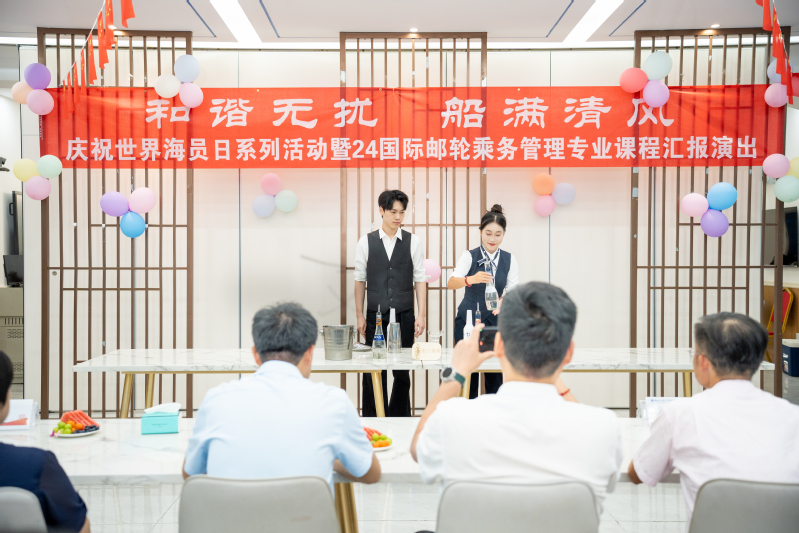 為慶祝世界海員日并檢驗(yàn)教學(xué)成果,6月18日,航海學(xué)院在郵輪五高訓(xùn)練中心一期成功舉辦了“和諧無擾 船滿清風(fēng)”世界海員日系列活動(dòng)暨24級(jí)國際郵輪乘務(wù)管理專業(yè)課程匯報(bào)演出。航海學(xué)院領(lǐng)導(dǎo)、行業(yè)專家及師生代表出席了本次活動(dòng)。