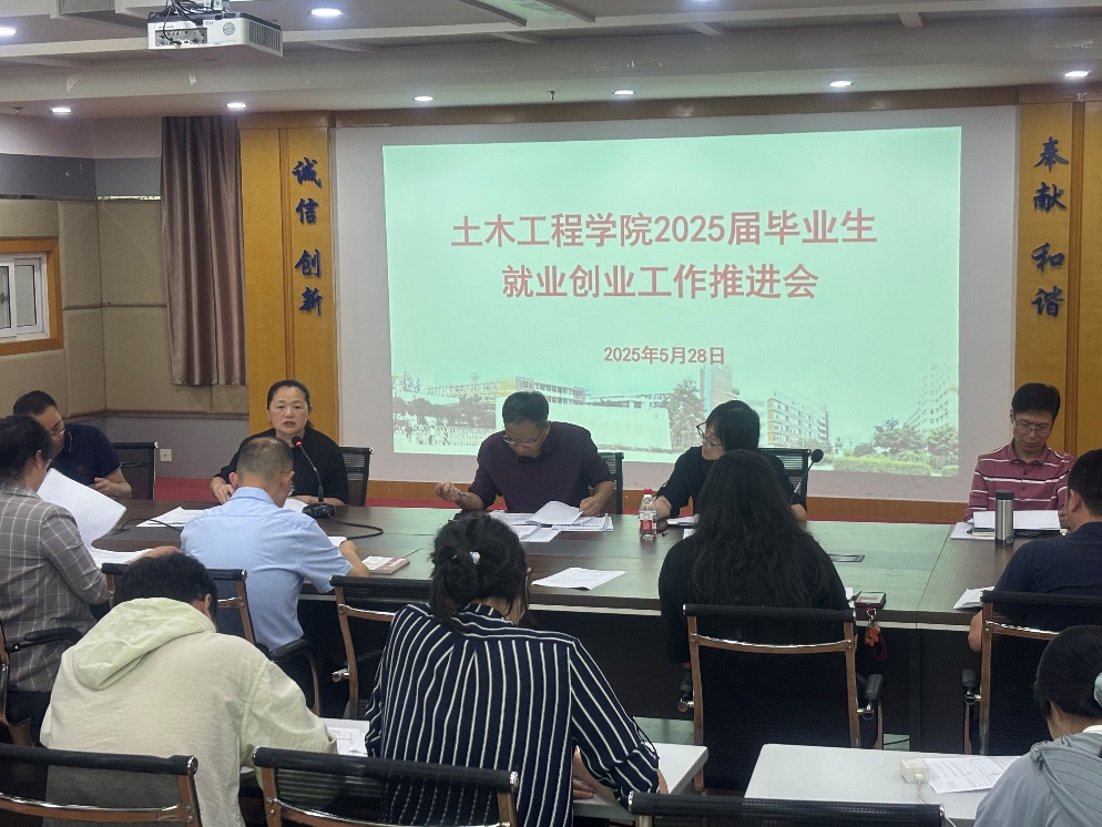 為深入貫徹落實(shí)國家關(guān)于高校畢業(yè)生就業(yè)創(chuàng)業(yè)工作部署,推動畢業(yè)生高質(zhì)量充分就業(yè),2025年5月28日,土木工程學(xué)院于福船園創(chuàng)新樓1007召開2025屆畢業(yè)生就業(yè)創(chuàng)業(yè)工作推進(jìn)會。學(xué)院領(lǐng)導(dǎo)班子、各教研室主任、畢業(yè)班輔導(dǎo)員及頂崗實(shí)習(xí)指導(dǎo)老師參會,會議由黨總支副書記任穎卿主持。