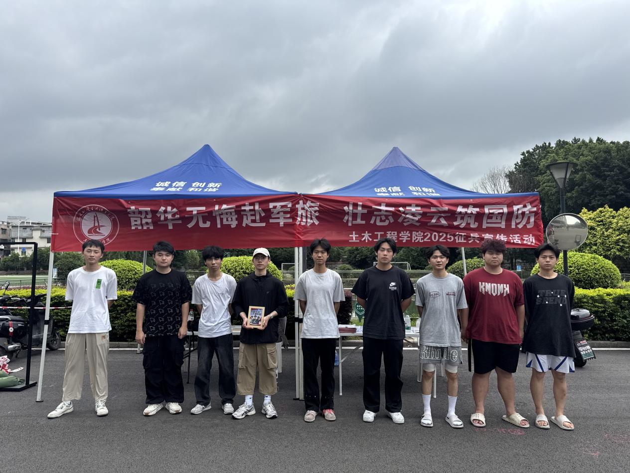 為增強(qiáng)同學(xué)們的愛國(guó)情懷,激發(fā)大學(xué)生參軍入伍的積極性,鼓勵(lì)有志青年響應(yīng)國(guó)家號(hào)召,投身到國(guó)防建設(shè)事業(yè)中。2025年6月11日,土木工程學(xué)院于福船園創(chuàng)新樓前組織開展2025年征兵宣傳活動(dòng)。