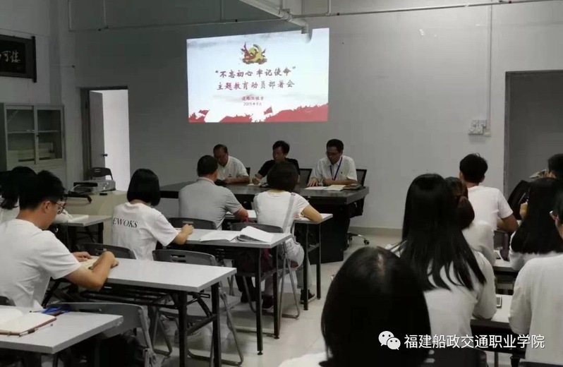 9月20日上午,福建船政交通職業(yè)學(xué)院道路工程系召開“不忘初心、牢記使命”主題教育動(dòng)員大會(huì),系主任高杰主持會(huì)議,系書記江文作動(dòng)員講話,學(xué)院巡回指導(dǎo)組二組組長(zhǎng)王心金到會(huì)指導(dǎo)并講話。學(xué)院巡回指導(dǎo)組二組成員,道路工程系全體黨員,部分教職工、入黨積極分子代表出席會(huì)議。