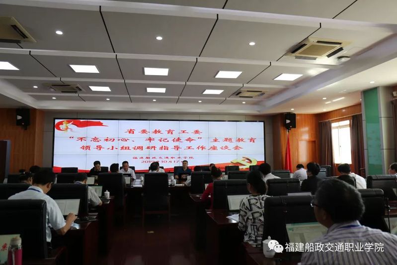 10月17日上午,省委教育工委副書記、省委教育工委主題教育領(lǐng)導(dǎo)小組副組長、領(lǐng)導(dǎo)小組辦公室主任王建南一行到福建船政交通職業(yè)學(xué)院調(diào)研指導(dǎo)“不忘初心、牢記使命”主題教育工作。學(xué)院“不忘初心、牢記使命”主題教育領(lǐng)導(dǎo)小組全體成員參加了調(diào)研座談會(huì)。