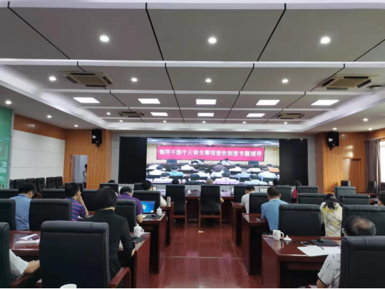 2019年9月27日,省教育廳邀請(qǐng)省委巡視三組副組長(zhǎng)、省委組織部干部監(jiān)督室主任曾志斌舉辦領(lǐng)導(dǎo)干部個(gè)人有關(guān)事項(xiàng)報(bào)告制度專題輔導(dǎo)講座,省教育廳設(shè)置主會(huì)場(chǎng),學(xué)院設(shè)置分會(huì)場(chǎng),同步收看輔導(dǎo)講座。學(xué)院領(lǐng)導(dǎo)班子成員、全體處級(jí)干部共41人收看。