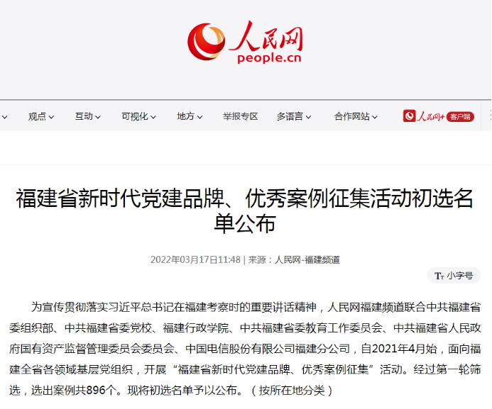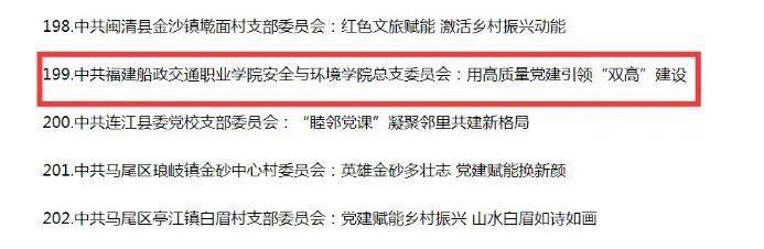 為宣傳貫徹落實(shí)習(xí)近平總書記在福建考察時(shí)的重要講話精神,由人民網(wǎng)福建頻道聯(lián)合中共福建省委組織部、中共福建省委黨校、福建行政學(xué)院、中共福建省委教育工作委員會(huì)、中共福建省人民政府國(guó)有資產(chǎn)監(jiān)督管理委員會(huì)、中國(guó)電信股份有限公司福建分公司,自2021年4月始,面向福建全省各領(lǐng)域基層黨組織,開展“福建省新時(shí)代黨建品牌、優(yōu)秀案例征集”活動(dòng)。經(jīng)過第一輪篩選,選出案例共896個(gè),近日由人民網(wǎng)福建頻道公布入選名單,學(xué)院黨委選送的《中共福建船政交通職業(yè)學(xué)院安全與環(huán)境學(xué)院總支委員會(huì):用高質(zhì)量黨建引領(lǐng)“雙高”建設(shè)》入選。