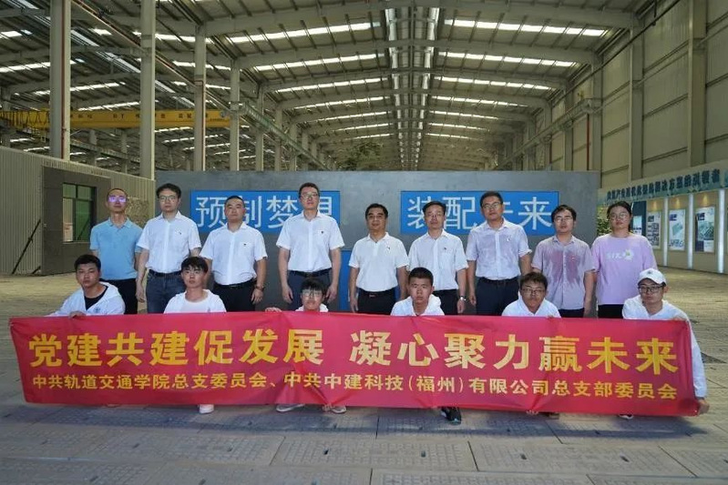 喜迎黨的二十大勝利召開,落實新時代基層黨建工作要求,充分發(fā)揮黨建引領(lǐng)作用,進一步深化產(chǎn)教融合,推進校企合作,實現(xiàn)黨建與業(yè)務(wù)工作“雙提升”,2022年7月21日,軌道交通學(xué)院黨總支赴閩清縣與中建科技(福州)有限公司黨總支(以下簡稱“中建科技黨總支”)結(jié)對共建聯(lián)合開展“黨建共建促發(fā)展 凝心聚力贏未來”主題黨日活動暨校外實訓(xùn)基地揭牌儀式。