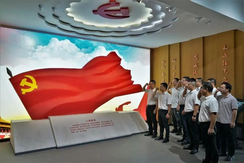 在黨日活動中,雙方黨員共同參觀了吳孟超院士館。在講解員的帶領(lǐng)下,黨員們回顧了吳孟超院士勵志報國、勇攀高峰、大醫(yī)仁心、甘為人梯、回報鄉(xiāng)梓的光輝歷程,深刻體會到吳孟超院士“愛黨、愛國、愛民”的“三愛”情懷,和“勇闖禁區(qū)、勇于創(chuàng)新、勇往直前、勇攀高峰”的“四勇”精神。黨員們面對黨旗重溫入黨誓詞,激昂的宣誓聲傳達出身為共產(chǎn)黨員的責(zé)任感和使命感,更加堅定了不忘初心再出發(fā)、牢記使命勇?lián)?dāng)?shù)男判暮蜎Q心。