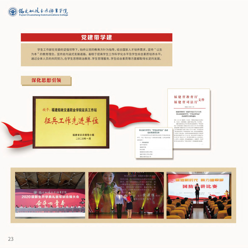 十九大以來,福建船政交通職業(yè)學(xué)院堅(jiān)持以習(xí)近平新時(shí)代中國(guó)特色社會(huì)主義思想為指導(dǎo),堅(jiān)持社會(huì)主義辦學(xué)方向,深入貫徹黨的十九大和十九屆歷次全會(huì)精神,堅(jiān)守“為黨育人、為國(guó)育才”的初心和使命,慎終如始推進(jìn)學(xué)校黨的政治建設(shè)、思想建設(shè)、組織建設(shè)、作風(fēng)建設(shè)、紀(jì)律建設(shè)、制度建設(shè),黨的組織體系和學(xué)校治理體系相得益彰,黨建引領(lǐng)推動(dòng)創(chuàng)新船政、質(zhì)量船政、文化船政協(xié)奏齊鳴,政治生態(tài)、學(xué)術(shù)生態(tài)、文化生態(tài)持續(xù)向好,辦學(xué)效率、辦學(xué)效能、辦學(xué)效益顯著提升!