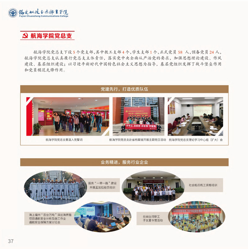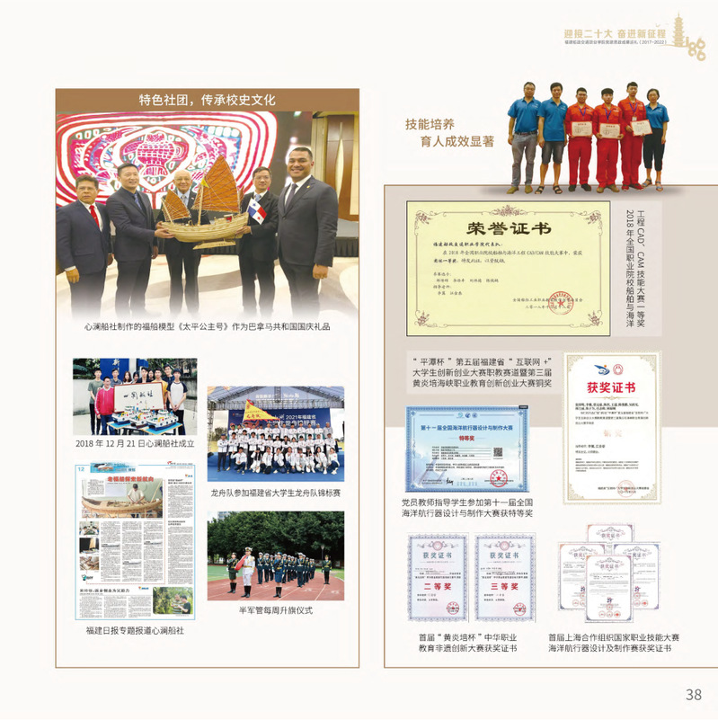 十九大以來,福建船政交通職業(yè)學院堅持以習近平新時代中國特色社會主義思想為指導(dǎo),堅持社會主義辦學方向,深入貫徹黨的十九大和十九屆歷次全會精神,堅守“為黨育人、為國育才”的初心和使命,慎終如始推進學校黨的政治建設(shè)、思想建設(shè)、組織建設(shè)、作風建設(shè)、紀律建設(shè)、制度建設(shè),黨的組織體系和學校治理體系相得益彰,黨建引領(lǐng)推動創(chuàng)新船政、質(zhì)量船政、文化船政協(xié)奏齊鳴,政治生態(tài)、學術(shù)生態(tài)、文化生態(tài)持續(xù)向好,辦學效率、辦學效能、辦學效益顯著提升!