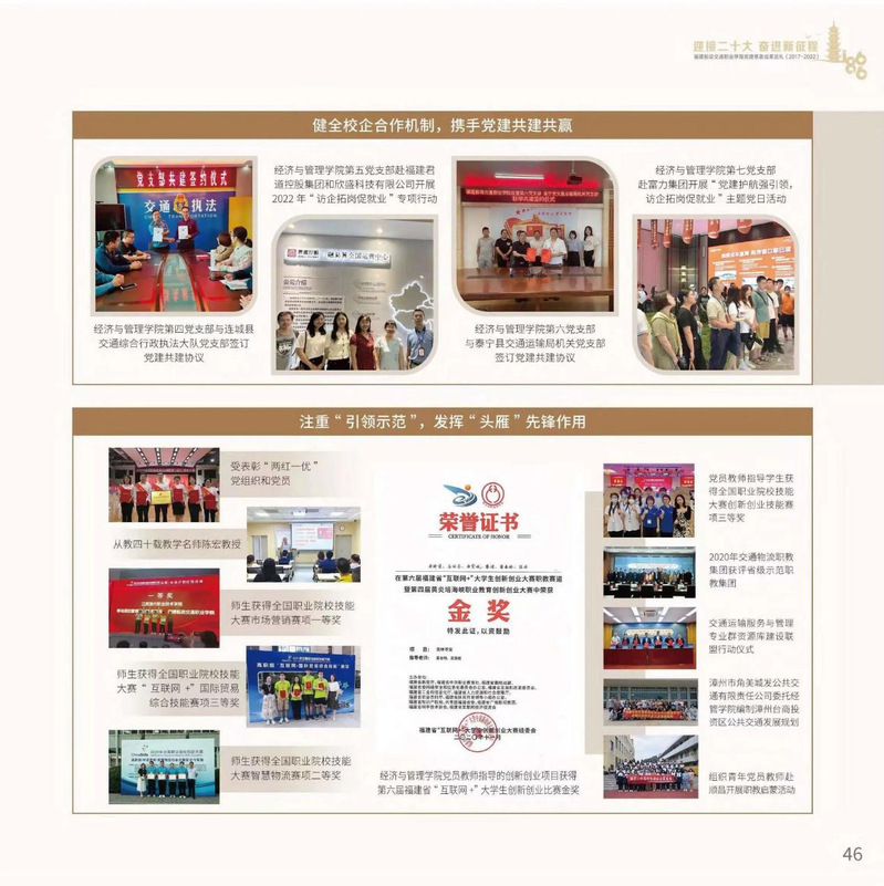 十九大以來,福建船政交通職業(yè)學(xué)院堅(jiān)持以習(xí)近平新時(shí)代中國(guó)特色社會(huì)主義思想為指導(dǎo),堅(jiān)持社會(huì)主義辦學(xué)方向,深入貫徹黨的十九大和十九屆歷次全會(huì)精神,堅(jiān)守“為黨育人、為國(guó)育才”的初心和使命,慎終如始推進(jìn)學(xué)校黨的政治建設(shè)、思想建設(shè)、組織建設(shè)、作風(fēng)建設(shè)、紀(jì)律建設(shè)、制度建設(shè),黨的組織體系和學(xué)校治理體系相得益彰,黨建引領(lǐng)推動(dòng)創(chuàng)新船政、質(zhì)量船政、文化船政協(xié)奏齊鳴,政治生態(tài)、學(xué)術(shù)生態(tài)、文化生態(tài)持續(xù)向好,辦學(xué)效率、辦學(xué)效能、辦學(xué)效益顯著提升!