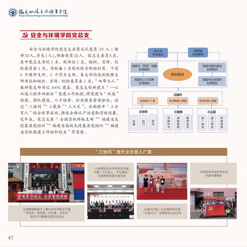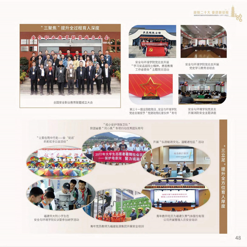 十九大以來,福建船政交通職業(yè)學(xué)院堅(jiān)持以習(xí)近平新時(shí)代中國特色社會(huì)主義思想為指導(dǎo),堅(jiān)持社會(huì)主義辦學(xué)方向,深入貫徹黨的十九大和十九屆歷次全會(huì)精神,堅(jiān)守“為黨育人、為國育才”的初心和使命,慎終如始推進(jìn)學(xué)校黨的政治建設(shè)、思想建設(shè)、組織建設(shè)、作風(fēng)建設(shè)、紀(jì)律建設(shè)、制度建設(shè),黨的組織體系和學(xué)校治理體系相得益彰,黨建引領(lǐng)推動(dòng)創(chuàng)新船政、質(zhì)量船政、文化船政協(xié)奏齊鳴,政治生態(tài)、學(xué)術(shù)生態(tài)、文化生態(tài)持續(xù)向好,辦學(xué)效率、辦學(xué)效能、辦學(xué)效益顯著提升!