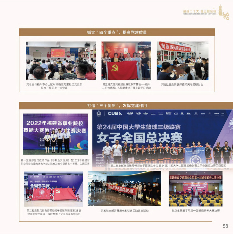 十九大以來,福建船政交通職業(yè)學院堅持以習近平新時代中國特色社會主義思想為指導,堅持社會主義辦學方向,深入貫徹黨的十九大和十九屆歷次全會精神,堅守“為黨育人、為國育才”的初心和使命,慎終如始推進學校黨的政治建設、思想建設、組織建設、作風建設、紀律建設、制度建設,黨的組織體系和學校治理體系相得益彰,黨建引領推動創(chuàng)新船政、質量船政、文化船政協奏齊鳴,政治生態(tài)、學術生態(tài)、文化生態(tài)持續(xù)向好,辦學效率、辦學效能、辦學效益顯著提升!