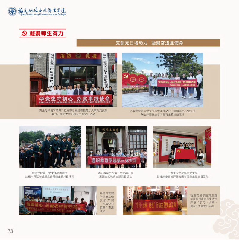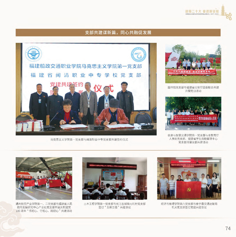 十九大以來,福建船政交通職業(yè)學(xué)院堅持以習(xí)近平新時代中國特色社會主義思想為指導(dǎo),堅持社會主義辦學(xué)方向,深入貫徹黨的十九大和十九屆歷次全會精神,堅守“為黨育人、為國育才”的初心和使命,慎終如始推進學(xué)校黨的政治建設(shè)、思想建設(shè)、組織建設(shè)、作風(fēng)建設(shè)、紀律建設(shè)、制度建設(shè),黨的組織體系和學(xué)校治理體系相得益彰,黨建引領(lǐng)推動創(chuàng)新船政、質(zhì)量船政、文化船政協(xié)奏齊鳴,政治生態(tài)、學(xué)術(shù)生態(tài)、文化生態(tài)持續(xù)向好,辦學(xué)效率、辦學(xué)效能、辦學(xué)效益顯著提升!