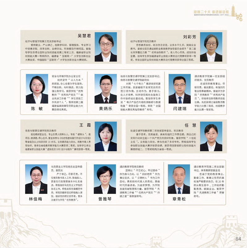 2022年是黨的二十大召開之年,是學校深化綜合改革、加快“雙高”建設(shè)的關(guān)鍵年,是續(xù)寫過去5年工作、回首新時代10年變革的轉(zhuǎn)折年。站在新的歷史起點上,船政交通人將始終沿著習近平總書記親自為福建擘畫的最美山水圖、沿革船政先賢留下的文化瑰寶、延續(xù)一代代船政交通人接續(xù)奮斗的精神,以飽滿的精神、昂揚的斗志、奮進的狀態(tài),開啟建設(shè)中國特色高水平高職學校的新征程,以優(yōu)異成績慶祝黨的二十大勝利召開!