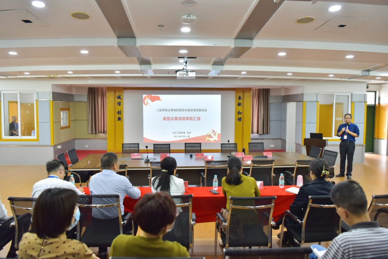 下午,在土木工程學院召開了現(xiàn)場推進會,校領導、相關職能部門、二級學院班子全體成員參會。現(xiàn)場推進會上,土木工程學院黨總支書記高杰就黨總支會議、黨政聯(lián)席會議召開情況向與會人員做了匯報,隨后,大家一同觀摩了土木工程學院黨總支會議、黨政聯(lián)席會議現(xiàn)場會。