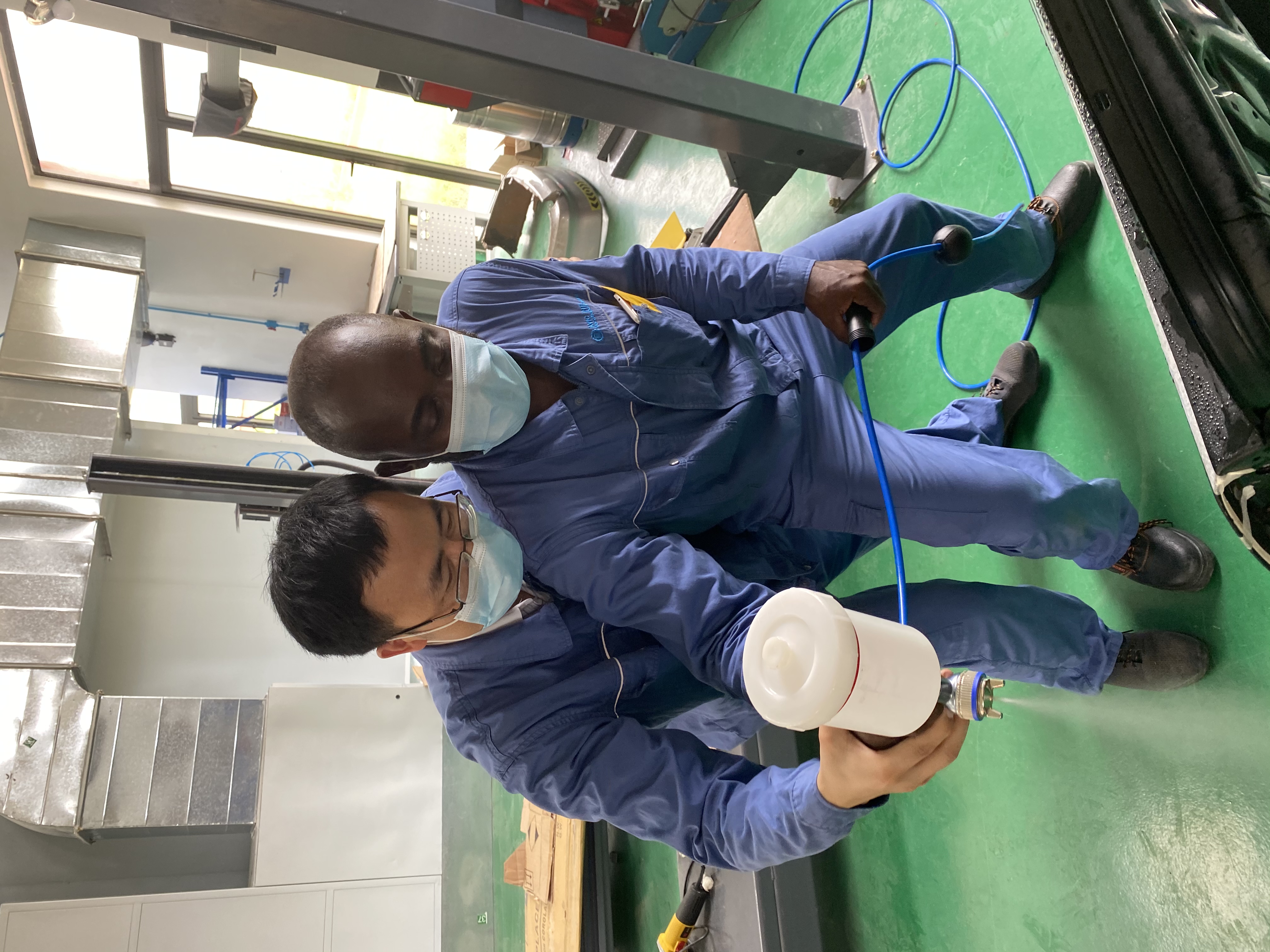 當(dāng)我們?nèi)σ愿伴_展工作的時(shí)候,又發(fā)現(xiàn)一切都不是想象中那么順利,斷電斷水、文化差異、教育理念不同、語(yǔ)言的不通我們都可以克服,但沒有工具、買不到耗材、帶來(lái)的教學(xué)資源儲(chǔ)備完全不適應(yīng)當(dāng)?shù)亓慊A(chǔ)的學(xué)員,等等一系列困難一個(gè)接一個(gè)冒出來(lái)。我自己制作工具、自己籌集耗材、臨時(shí)制作教學(xué)資源、帶這非洲的學(xué)員一起拜訪當(dāng)?shù)仄嚻髽I(yè)介紹校企合作經(jīng)驗(yàn)等。因?yàn)闀r(shí)差,我常常上完課后忙到深夜12點(diǎn)才能跟國(guó)內(nèi)聯(lián)系,學(xué)院黨委總能在第一時(shí)間回應(yīng),幫助我們解決問(wèn)題,這成為團(tuán)隊(duì)在前方迎難而上最有力、最可靠的組織保障。