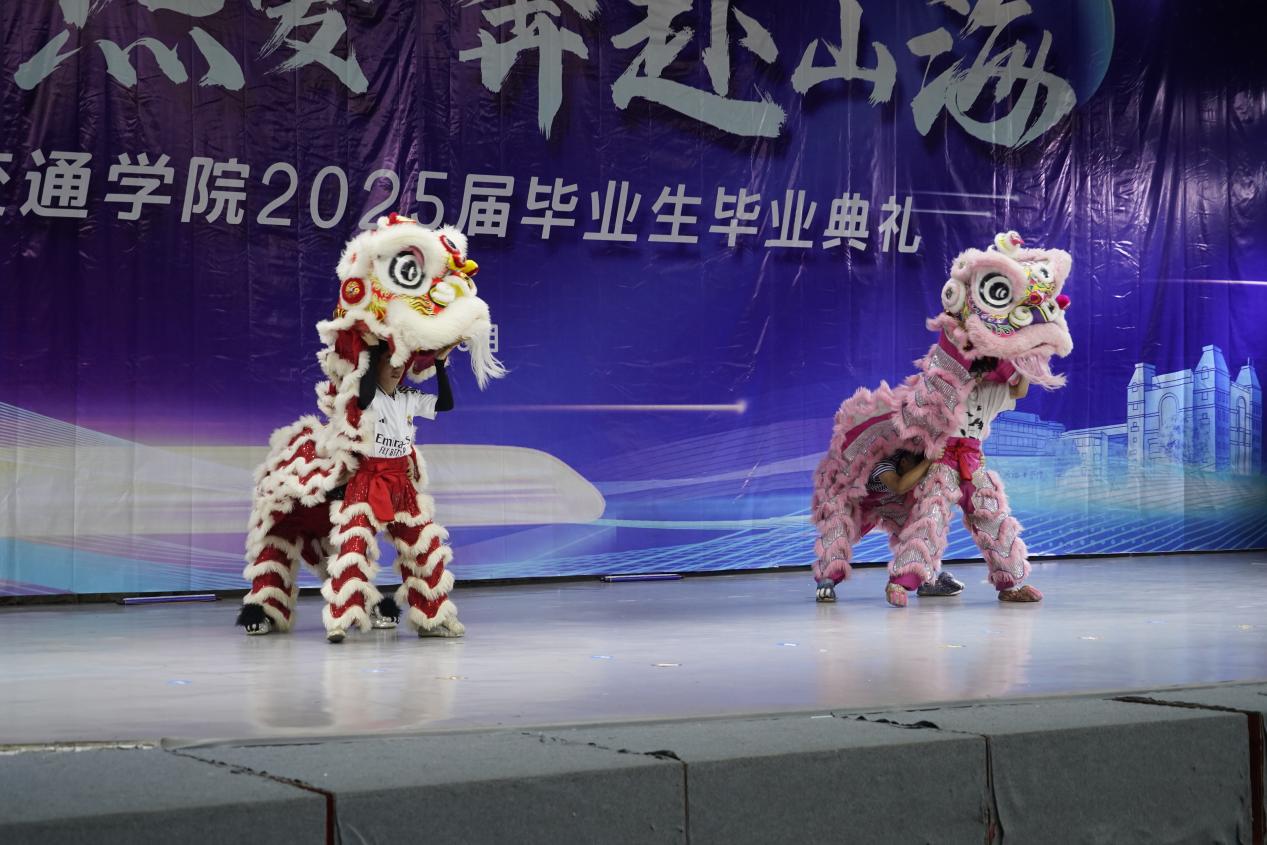 典禮伊始,醒獅社帶來《祥獅獻(xiàn)瑞》,靈動的舞獅身姿矯健,傳遞著祥瑞之氣,寓意吉祥如意,畢業(yè)順?biāo)欤?/span>為畢業(yè)生們送上美好祝福。