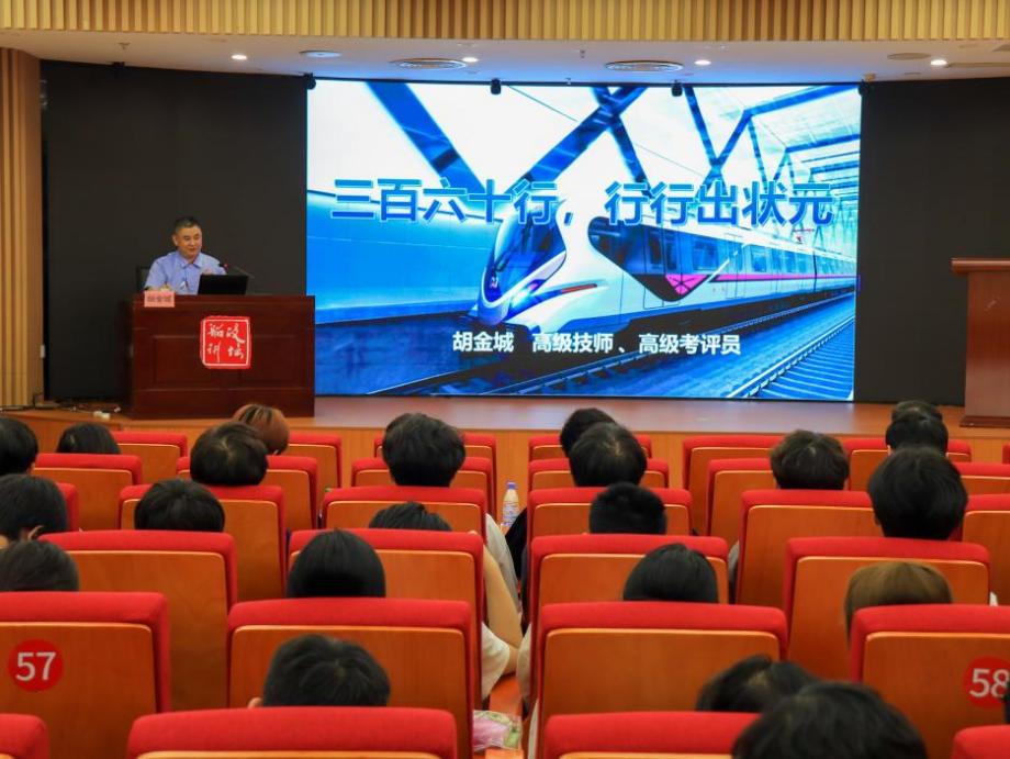 為深入學(xué)習(xí)貫徹黨的二十大精神和習(xí)近平總書記關(guān)于大力弘揚(yáng)勞模精神、勞動(dòng)精神、工匠精神的重要指示,激勵(lì)廣大師生在新時(shí)代征程中勇?lián)姑㈨频Z奮進(jìn),5月28日上午,由福建省總工會(huì)指導(dǎo)、學(xué)院工會(huì)與軌道交通學(xué)院聯(lián)合承辦的“勞模工匠進(jìn)校園”系列活動(dòng)在福道園學(xué)術(shù)報(bào)告廳舉行。本次活動(dòng)特邀廈門市“胡金城技能大師工作室”領(lǐng)辦人、全國技術(shù)能手、廈門市“行業(yè)工匠”、“五一勞動(dòng)獎(jiǎng)?wù)隆鲍@得者、廈門地鐵運(yùn)營有限公司風(fēng)水電高級(jí)技師胡金城走進(jìn)我院,作題為《三百六十行,行行出狀元》的講座。學(xué)院黨政領(lǐng)導(dǎo)班子、各級(jí)師生代表及工會(huì)成員共一百五十余人參加活動(dòng)。