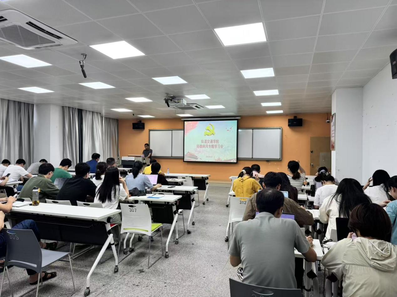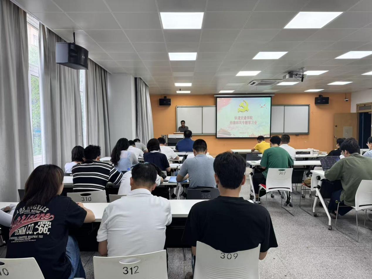 2025年5月26日,軌道交通學(xué)院組織全體教職工開展師德師風(fēng)學(xué)習(xí)警示教育專題會,深入學(xué)習(xí)《新時代高校教師職業(yè)行為十項準則》及師德失范典型案例,強化教師紀律意識與職業(yè)素養(yǎng),本次會議由軌道交通學(xué)院黨總支書記孫基主持。(圖1)