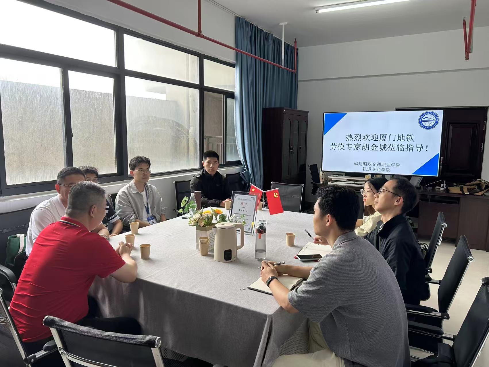 近日,全國(guó)技術(shù)能手、廈門市“胡金城技能大師工作室”領(lǐng)辦人、“行業(yè)工匠”、“五一勞動(dòng)獎(jiǎng)?wù)隆鲍@得者、廈門地鐵運(yùn)營(yíng)有限公司風(fēng)水電高級(jí)技師胡金城一行蒞院參觀交流。學(xué)院領(lǐng)導(dǎo)班子、李智宇技能大師工作室負(fù)責(zé)人和骨干教師參加了考察交流。