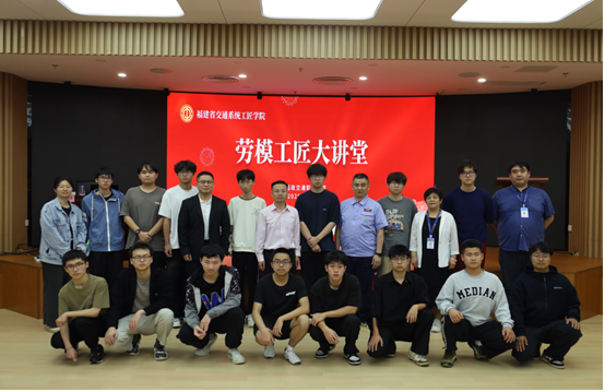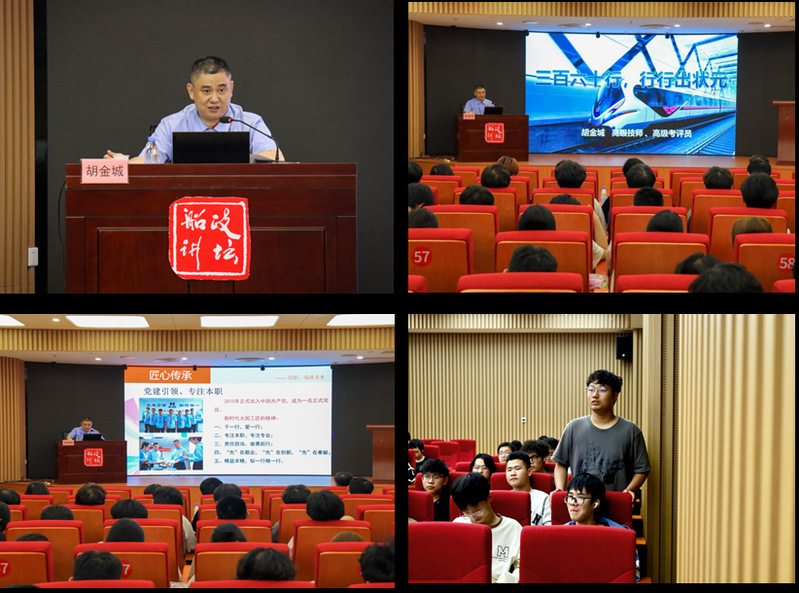 參觀結(jié)束后,胡金城大師為軌道交通學(xué)院的全體師生作了題為《三百六十行,行行出狀元》的勞模工匠講座。胡金城大師結(jié)合自身多年一線工作經(jīng)驗(yàn),分享了軌道交通行業(yè)的技術(shù)發(fā)展趨勢(shì)、崗位技能要求及職業(yè)成長(zhǎng)路徑。他勉勵(lì)師生夯實(shí)專業(yè)基礎(chǔ)、錘煉實(shí)操能力,以適應(yīng)行業(yè)智能化、數(shù)字化發(fā)展的新需求。在互動(dòng)環(huán)節(jié),胡金金城大師耐心解答了師生關(guān)于技能提升、創(chuàng)新實(shí)踐和職業(yè)規(guī)劃等問(wèn)題,現(xiàn)場(chǎng)氣氛熱烈,得到了現(xiàn)場(chǎng)師生的一致好評(píng)。