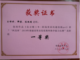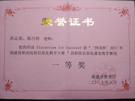 近三年,獲教師教學能力比賽(信息化教學大賽)國家級二等獎1項,省級一等獎3項、二等獎1項、三等獎1項。