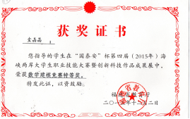 每年組織學生參加各類數學建模競賽,致力于培養(yǎng)高職生應用數學知識技能和數學軟件解決實際問題的能力,促使學生養(yǎng)成認真嚴謹的工作態(tài)度和精益求精的“工匠精神”。近五年來,獲全國二等獎1個,省一等獎3個,二等獎8個。