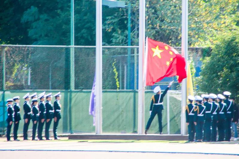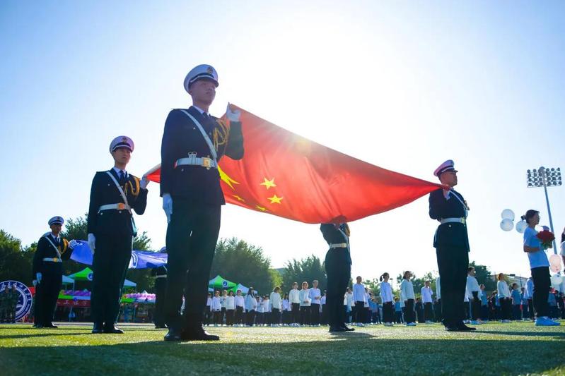 在全校師生們莊嚴的目光注視下,五星紅旗冉冉升起,在嘹亮的國歌聲結(jié)束后,盛大的開幕式正式開始。