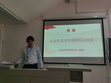3月17日下午,我院黨總支副書(shū)記金晶晶以“從百年黨史中感悟初心使命”為題,為總支全體黨員上黨課。