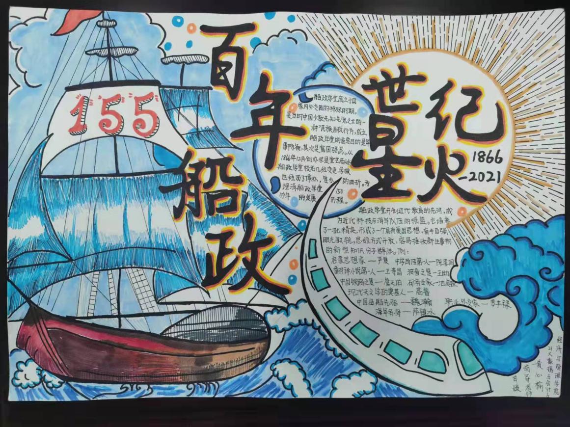 在船政杯-手抄報比賽和船政杯-DIY作品比賽中,同學們以“船”為主題,緊扣船政文化,通過手工制作船模、特色建筑模型、十字繡、剪紙、古時計數(shù)的算盤、數(shù)學用具,主題鮮明、富有創(chuàng)意、色彩運用恰當、體現(xiàn)美感和感染力,充分展示了豐富的想象力。