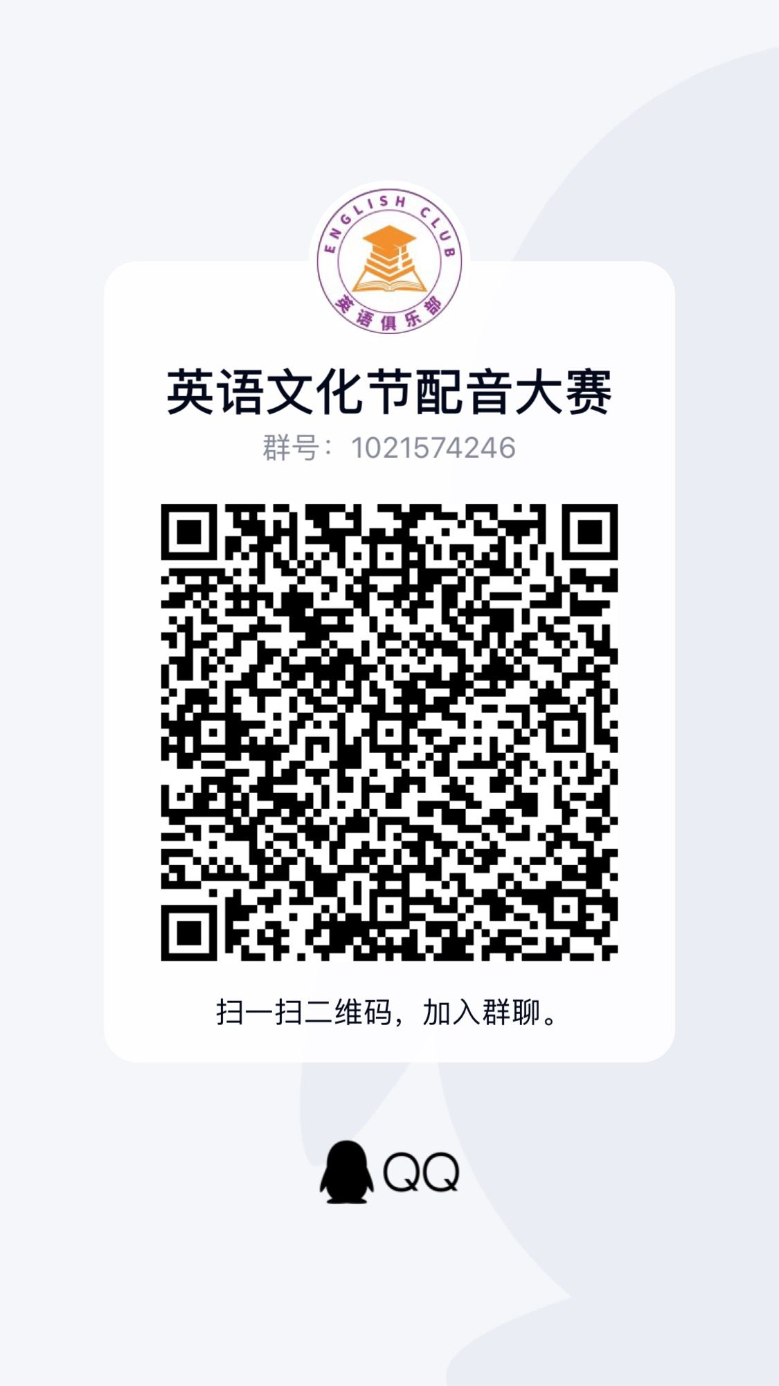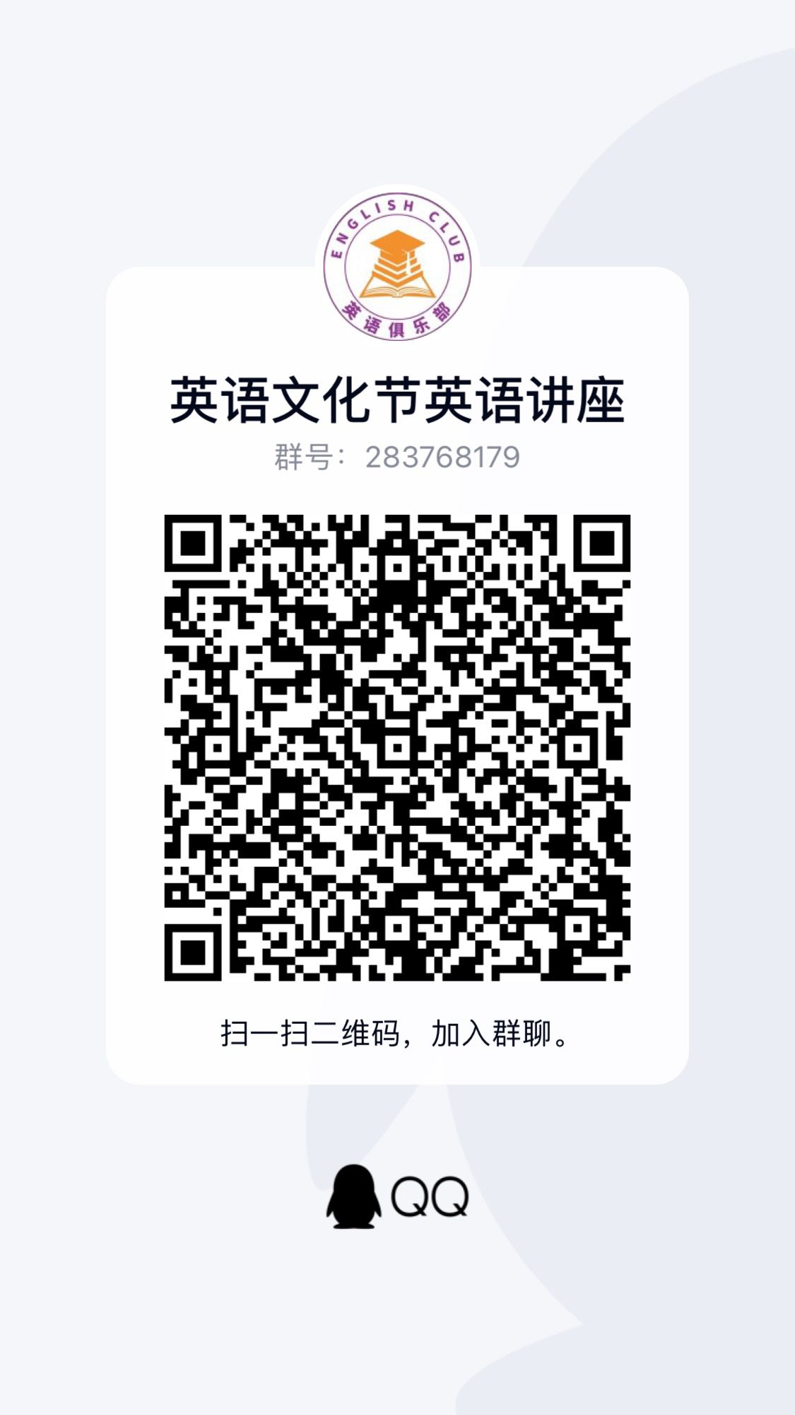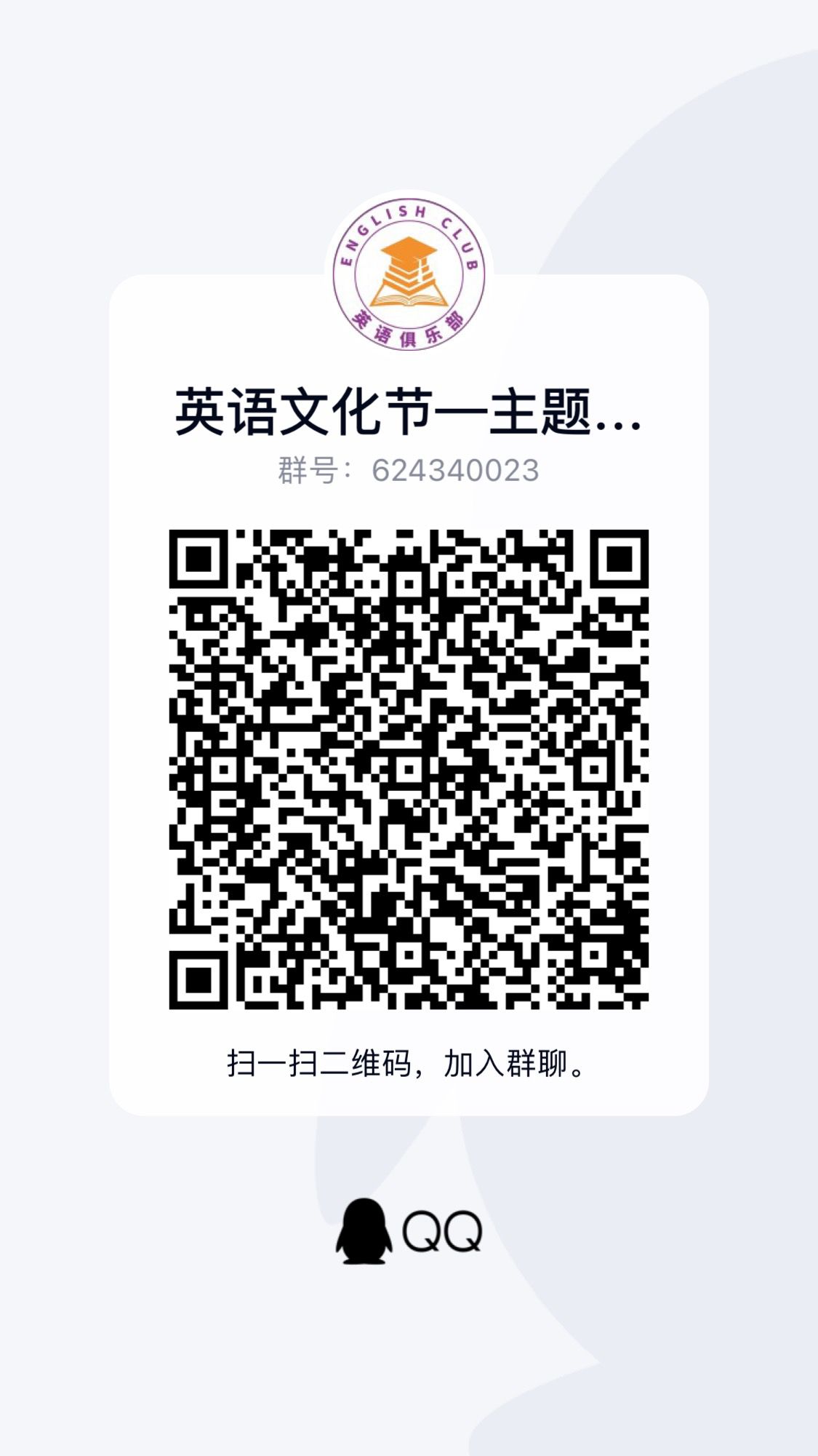 掃碼加入Q群并在三全育人平臺搜索關鍵詞“英語文化節(jié)”找到相應活動進行報名