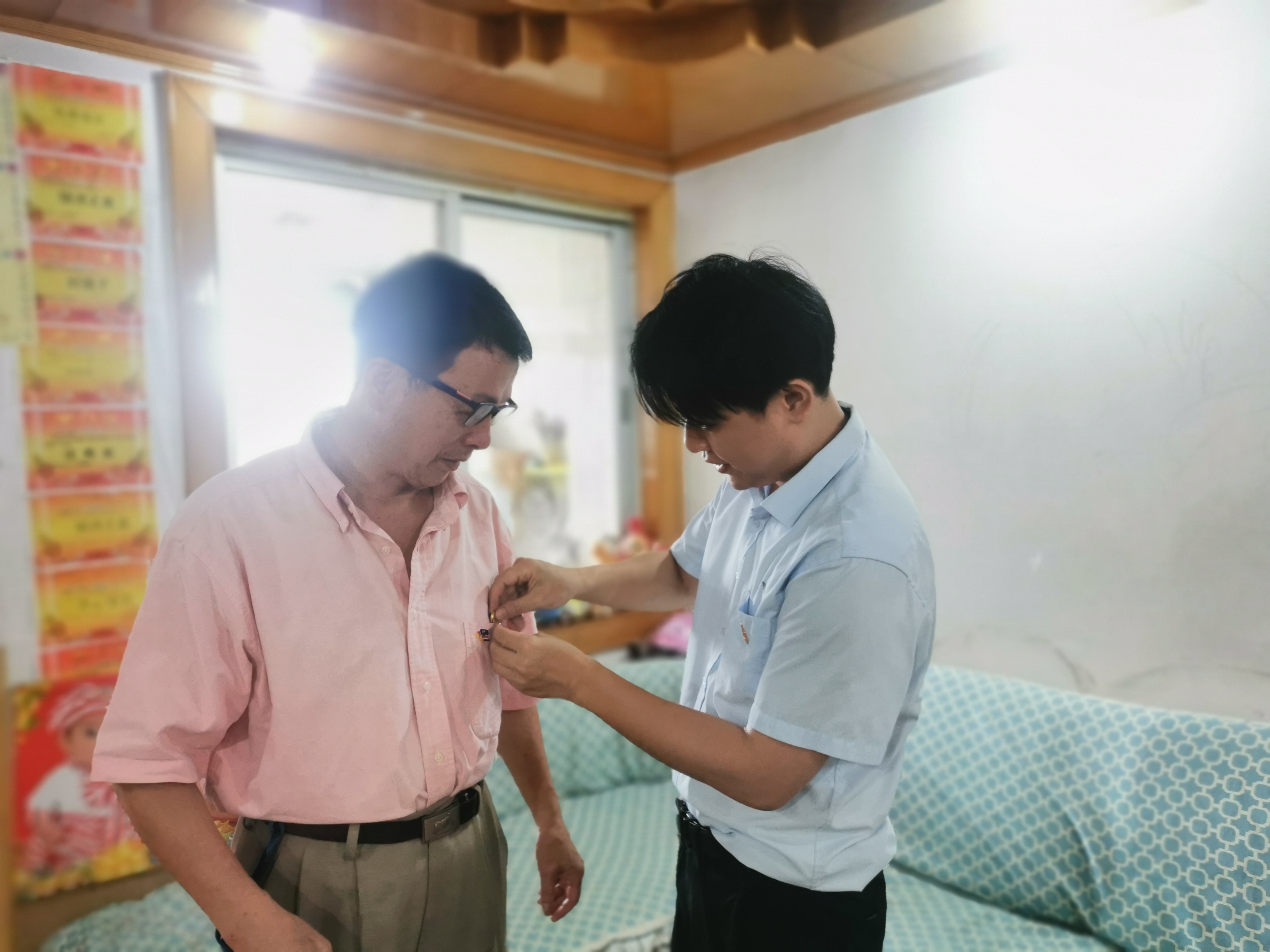老黨員陳于東精神矍鑠、思維敏捷、積極傳播正能量。金晶晶和劉淋送上祝福和慰問(wèn)品,祝陳于東老師健康長(zhǎng)壽、闔家幸福,希望他始終保持優(yōu)良作風(fēng),不忘初心、牢記使命,繼續(xù)為黨奉獻(xiàn)力量,為學(xué)院發(fā)展作出貢獻(xiàn)。