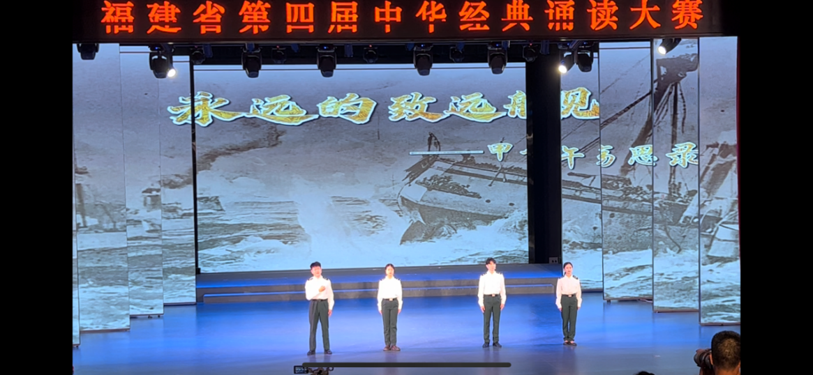 2022年7月8日,由我院教師于曉凌、吳婷婷、劉昉昉、邱晶晶指導(dǎo)參賽的兩份作品《永遠(yuǎn)的致遠(yuǎn)艦》和《相信》參加了福建省第四屆中華經(jīng)典誦寫講大賽現(xiàn)場決賽,場上參賽選手雄姿英發(fā)、從容應(yīng)賽。其中《永遠(yuǎn)的致遠(yuǎn)艦》以優(yōu)秀的成績作為福建省代表作品入圍國賽。
