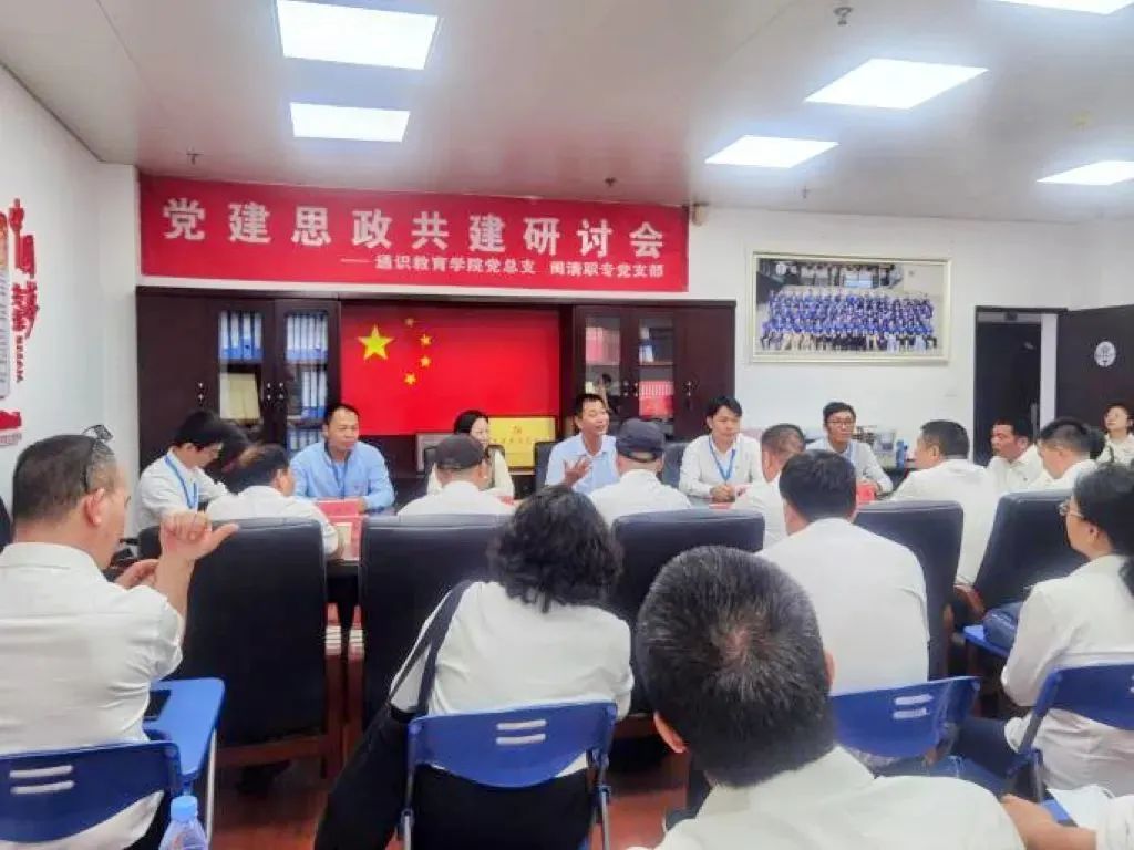 最后,閩清職專全體黨員到通識教育學院開展座談交流。在座談會上,通識教育學院院長、閩清教育局副局長方儒欽指出,雙方應以此次黨建共建活動為契機,加強溝通交流,充分發(fā)揮自身優(yōu)勢,共享資源,進一步匯聚黨建合力,不斷提升黨建工作和學校管理水平,努力開創(chuàng)工作新局面。閩清職專陳友水校長、林萍書記介紹了近年年來學校取得的成績、加強中高職基礎課程一體化建設等方面的內容,表示今后要加強合作交流,共同以黨建引領業(yè)務、以業(yè)務豐富黨建,打造學科特色品牌。