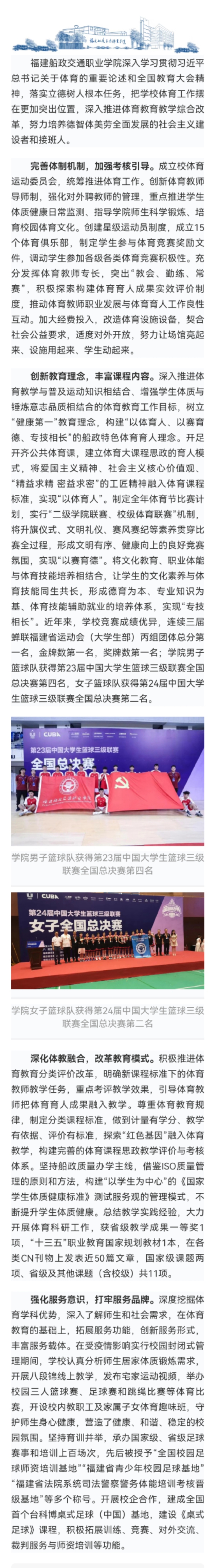 媒體聲音|福建船政交通職業(yè)學院:體育教改促發(fā)展 育人服務(wù)顯成效
