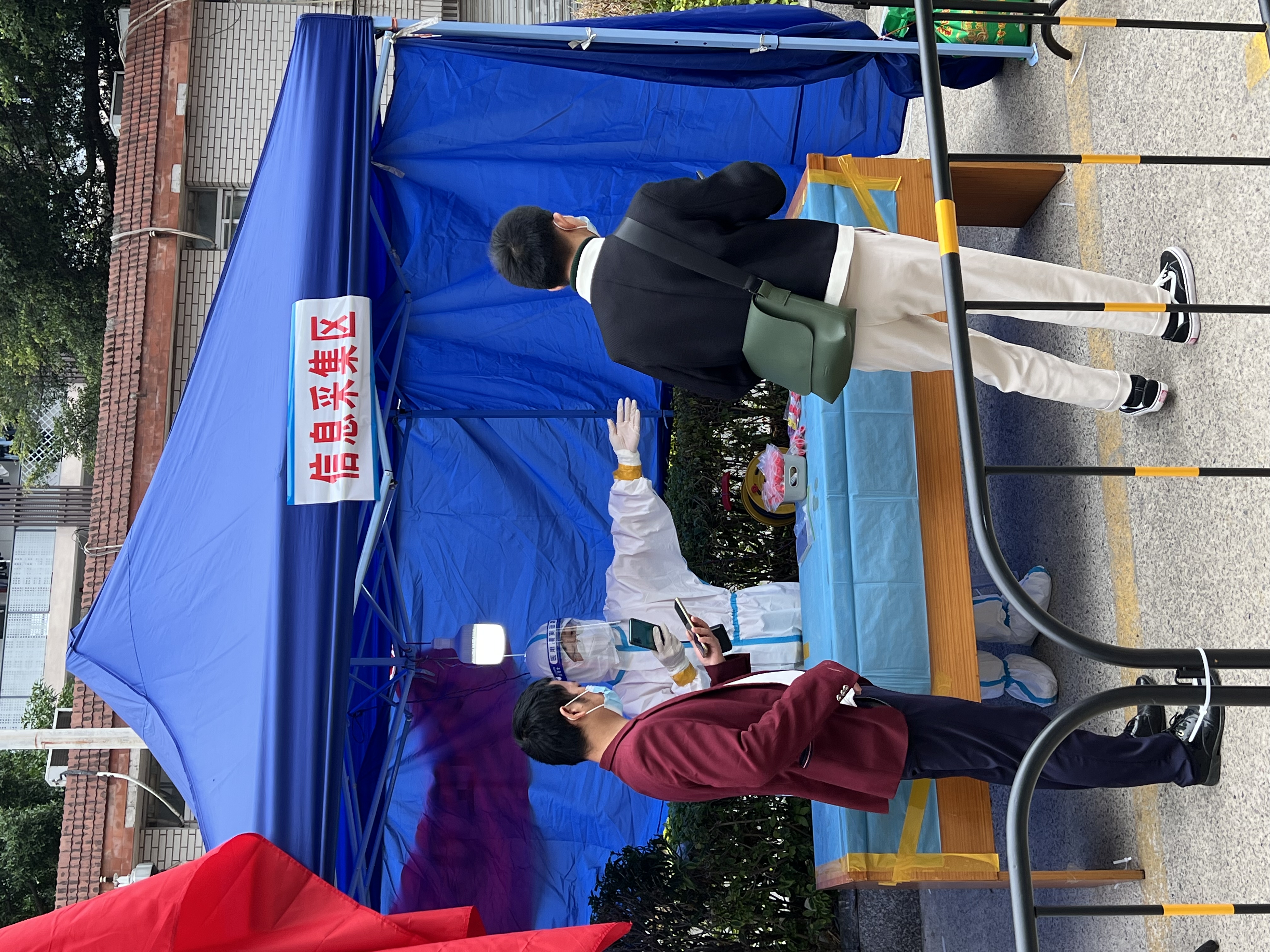 “請大家間隔一米,保持安全距離”“請佩戴好口罩”“請大家提前出示檢測二維碼”……在校內全員核酸檢測現(xiàn)場,章青松化身掃碼員或引導員,與黨員教師志愿者并肩戰(zhàn)斗,全程配合。他們分工明確、配合默契,保障了核酸檢測工作的順利完成,用實際行動筑牢戰(zhàn)“疫”堡壘。