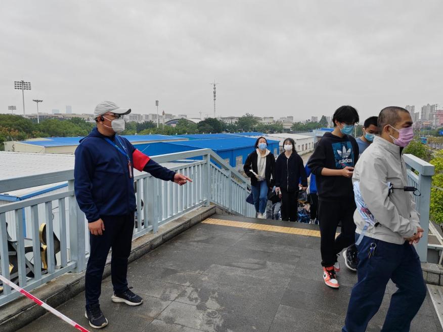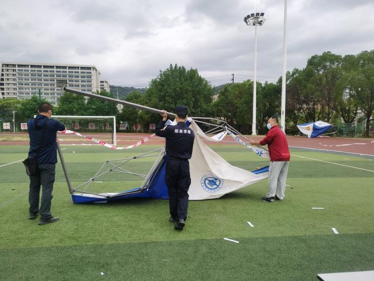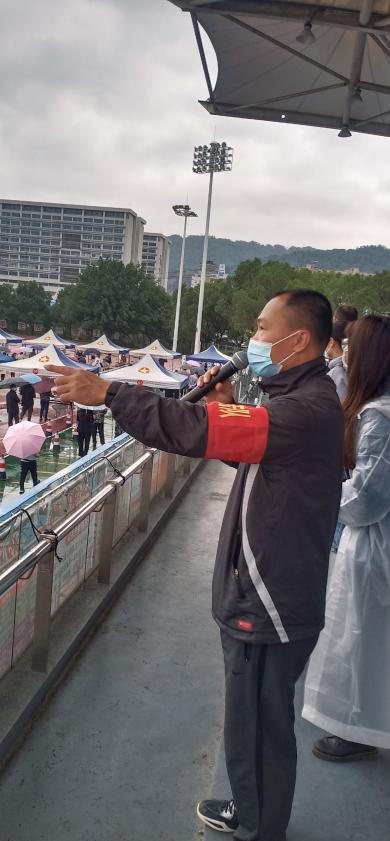 “請同學們保持一米間隔,打開健康碼,把手機屏幕調亮”。每天,郭建忠在學院青春田徑場(原名:北區(qū)田徑場)協(xié)調校內全員核酸檢測人員秩序,助力校內全員核酸檢測高效有序進行。校內全員核酸檢測結束后,郭建忠和章青松、校園保安一起整理青春體育場核酸檢測現(xiàn)場。郭建忠說,“我們黨員要從大局出發(fā),積極服務學校疫情防控工作”。