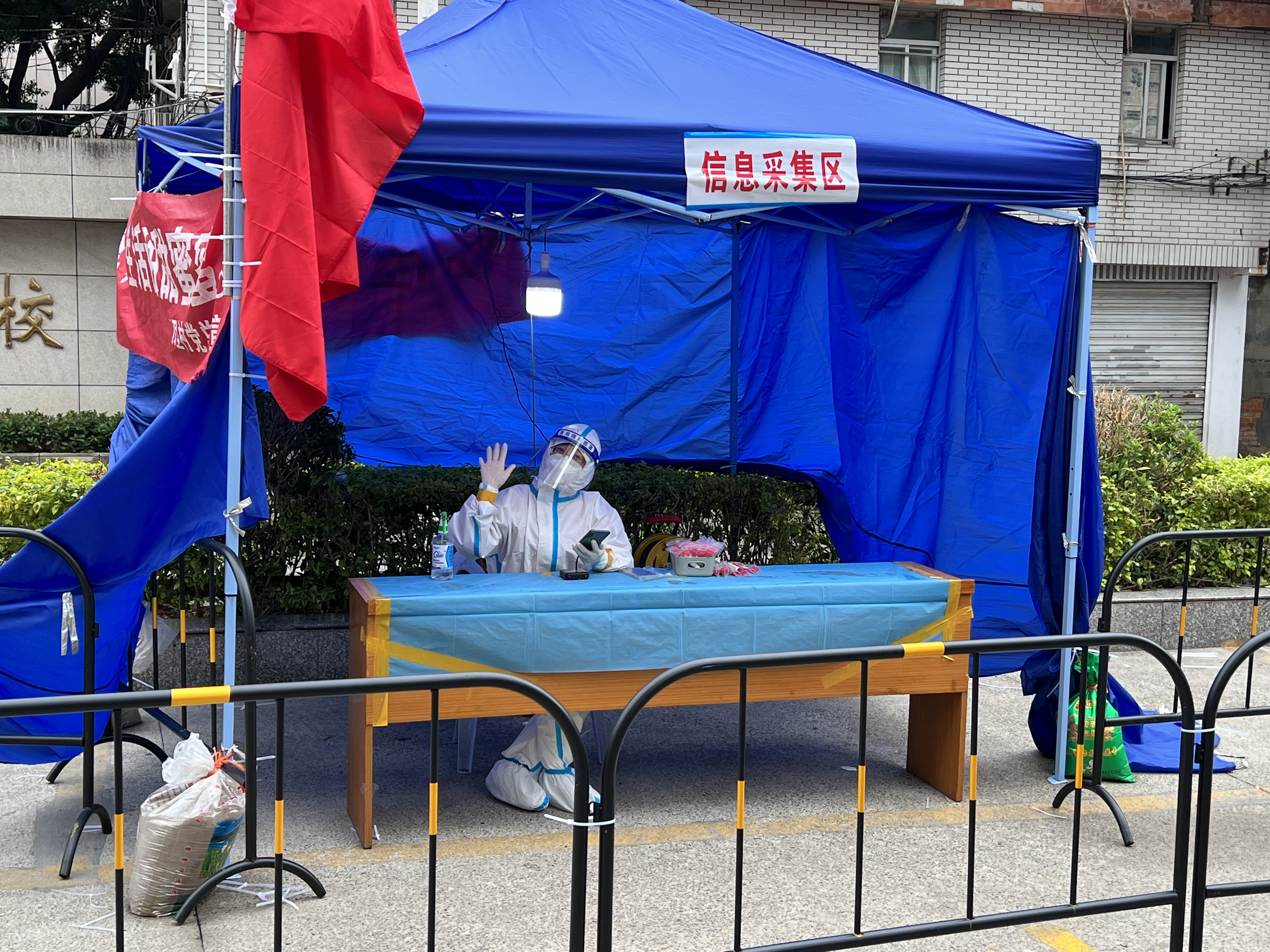 “請排好隊,每人保持1米距離。在倉山區(qū)萬里村核酸檢測點會看到一名多面志愿者,有時身穿紅馬甲,有條不紊地指揮著前來做核酸檢測的群眾,有時身穿“大白服”,協(xié)助核酸信息采集,有時幫忙檢測點做好核酸檢測準備工作。