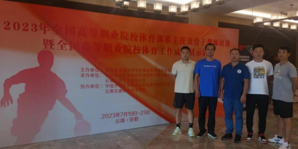 7月19日-23日,“2023年全國高等職業(yè)院校體育部系主任及骨干教師培訓(xùn)班暨體育工作成果(項目)展示活動” 在云南省紅河州彌勒市舉辦。此次培訓(xùn)邀請來自全國230所學(xué)校的體育部系主任和骨干教師等近600人參會。通識教育學(xué)院方儒欽院長、郭建忠副院長,以及章青松、林杰君、劉寶亮、趙少杰等教師參加會議。
