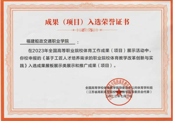 活動選拔出黨的十八大以來全國高等職業(yè)院校學(xué)校體育工作獲得的省部級及以上“三教”改革成果和建設(shè)項目,經(jīng)過專家評選出30所優(yōu)秀教學(xué)成果交流,我?!痘诠そ橙瞬排囵B(yǎng)需求的職業(yè)院校體育教學(xué)改革創(chuàng)新與實踐》的教學(xué)成果入選本次成果征集活動。