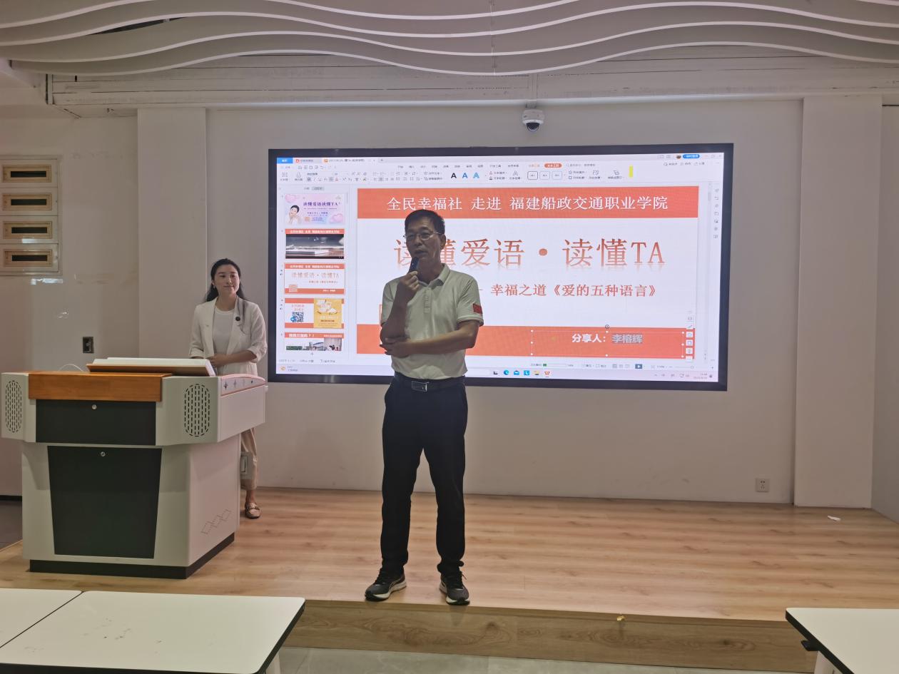 2023年9月20日下午,我院邀請全民幸福社福州院院長李榕輝老師做以題為《讀懂愛語讀懂TA》的培訓(xùn)。李榕輝老師是心啟動家庭文化主理人、國家三級心理咨詢師,國家三級人力資源管理師、家庭治療暨親子教育指導(dǎo)師、閩清縣心理咨詢師協(xié)會負(fù)責(zé)人。我院全體教職工和寧夏職業(yè)技術(shù)學(xué)院侯宗麗老師參加培訓(xùn),培訓(xùn)課由我院方儒欽院長主持。