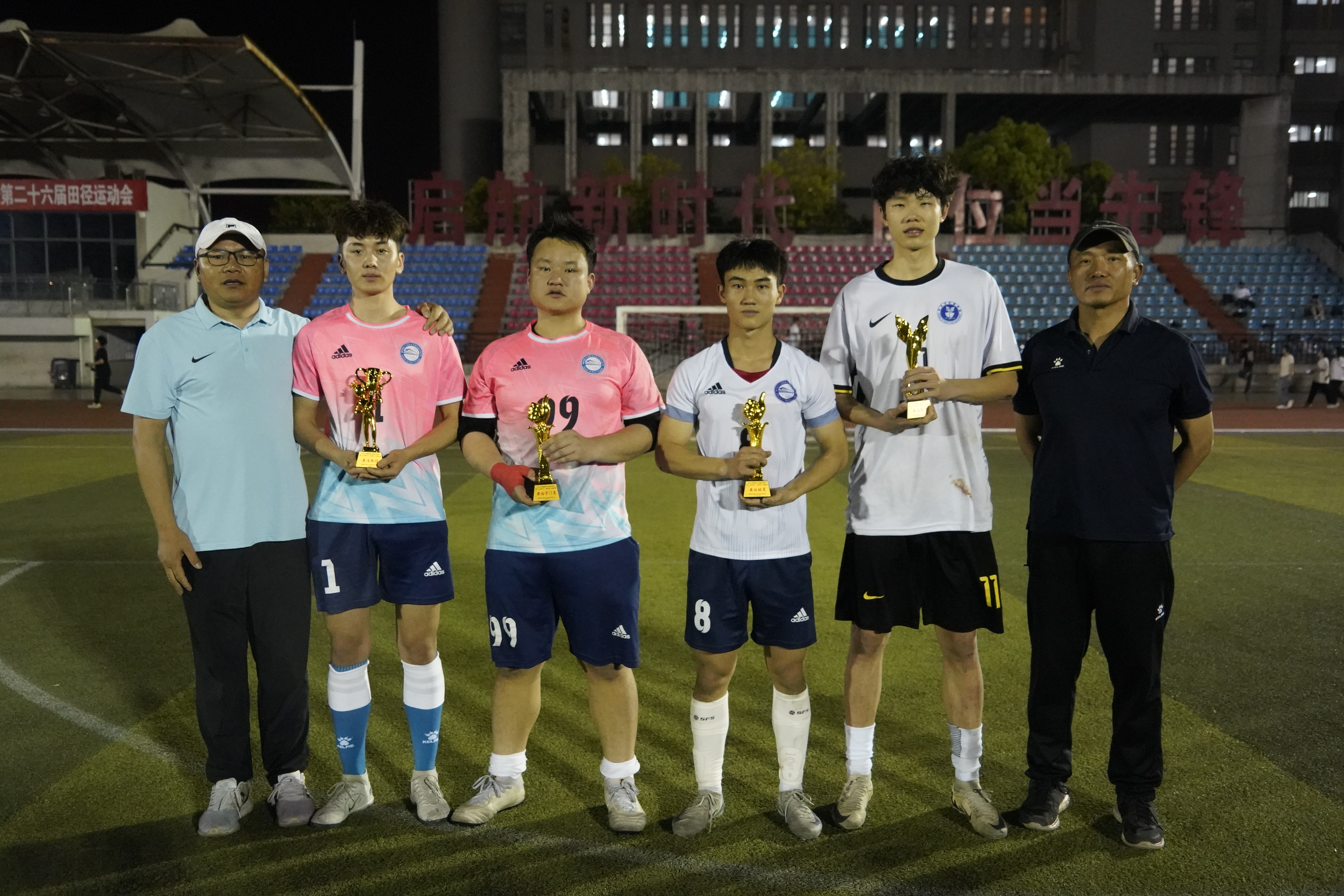 3月27日,學(xué)院第十七屆體育節(jié)“船政杯”校園足球聯(lián)賽落下帷幕。9個二級學(xué)院組隊參賽,最終,軌道交通學(xué)院奪冠,安全與環(huán)境學(xué)院獲得亞軍,經(jīng)濟(jì)與管理學(xué)院獲得第三名,信息與智慧交通學(xué)院獲得第四名,航海學(xué)院、汽車學(xué)院、土木工程學(xué)院、機(jī)械與智能制造學(xué)院、通用航空產(chǎn)業(yè)學(xué)院分獲第5-9名。軌道交通學(xué)院、通用航空產(chǎn)業(yè)學(xué)院獲得本屆校園足球聯(lián)賽“體育道德風(fēng)尚獎”;軌道交通學(xué)院薛萊鑫同學(xué)被評為最佳球員,安全與環(huán)境學(xué)院林子涵同學(xué)以10粒進(jìn)球獲得最佳射手稱號,軌道交通學(xué)院夏文杰同學(xué)和肖涂麟同學(xué)獲得最佳教練、最佳守門員稱號。