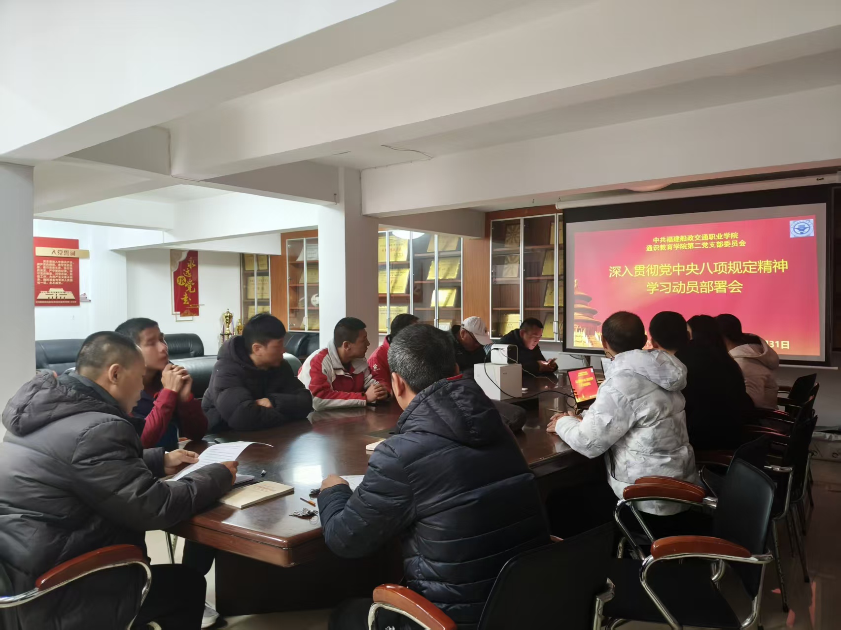 2025年3月31日通識(shí)教育學(xué)院第二黨支部全體黨員在田徑場(chǎng)109會(huì)議室召開(kāi)深入貫徹中央八項(xiàng)規(guī)定精神學(xué)習(xí)教育動(dòng)員部署會(huì)。