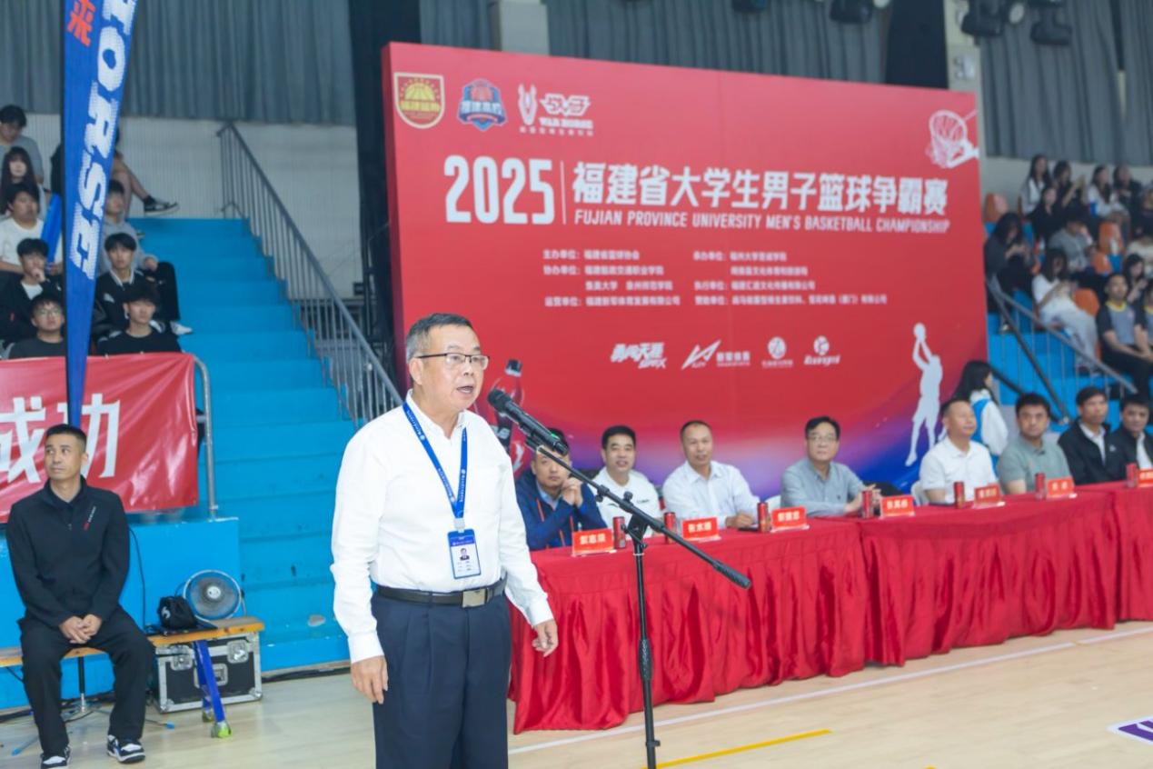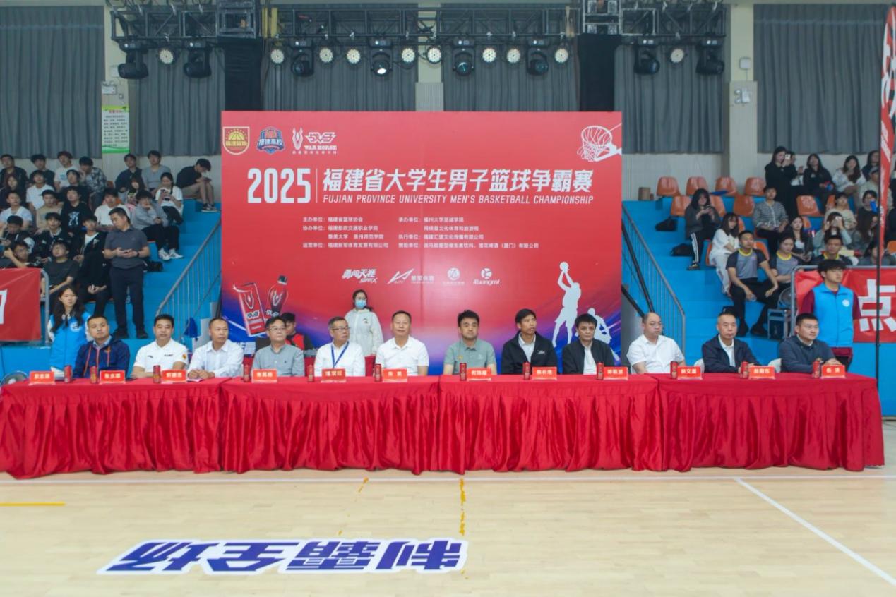2025年福建省大學(xué)生男子籃球爭(zhēng)霸賽在4月24日晚在我校舉行開幕式。福建省籃球協(xié)會(huì)副秘書長(zhǎng)何瑋翔、福建省公安體育協(xié)會(huì)秘書長(zhǎng)朱凱、福建船政交通職業(yè)學(xué)院副院長(zhǎng)陳常暉、福建理工大學(xué)體育部主任林長(zhǎng)地、福州大學(xué)至誠(chéng)學(xué)院黨委副書記林文麟、福建師范大學(xué)公共體育部副主任鐘曉波、福建警察學(xué)院戰(zhàn)術(shù)系主任林陽東、福建船政交通職業(yè)學(xué)院通識(shí)教育學(xué)院院長(zhǎng)郭建忠、閩侯縣文化體育和旅游局局長(zhǎng)張其標(biāo)、福建師范大學(xué)體育科學(xué)院籃球教研室主任、本次比賽裁判長(zhǎng)張水順等領(lǐng)導(dǎo)和嘉賓出席了開幕式。