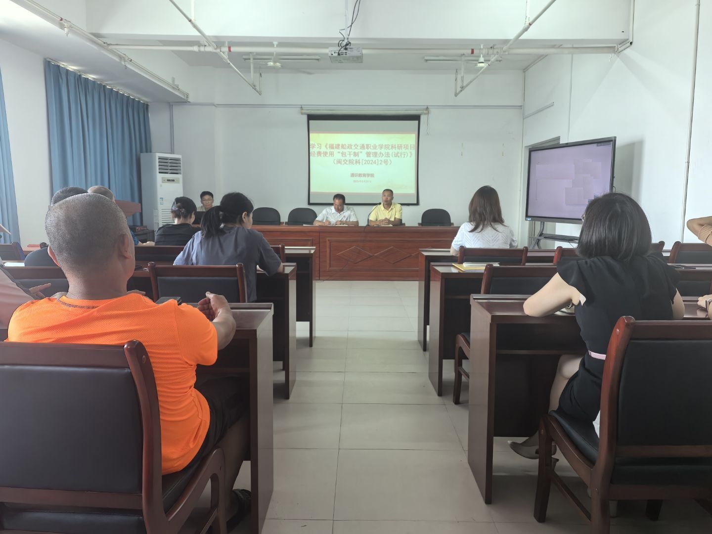會上,郭建忠院長領學了《福建船政交通職業(yè)學院科研項目經費使用“包干制”管理辦法(試行)》(閩交院科[2024]2號)和《福建船政交通職業(yè)學院科研計劃項目經費管理辦法》(閩交院科[2024]4號)、《福建船政交通職業(yè)學院學術期刊分類目錄及學術論文認定辦法》(閩交院科[2024]7號)、《福建船政交通職業(yè)學院科研項目級別與項目負責人認定辦法》(閩交院科[2024]15號)、《福建船政交通職業(yè)學院大型儀器設備購置可行性論證管理辦法(試行)福建船政交通職業(yè)學院大型儀器設備開放共享管理辦法(試行)》(閩交院科[2024]9號)。