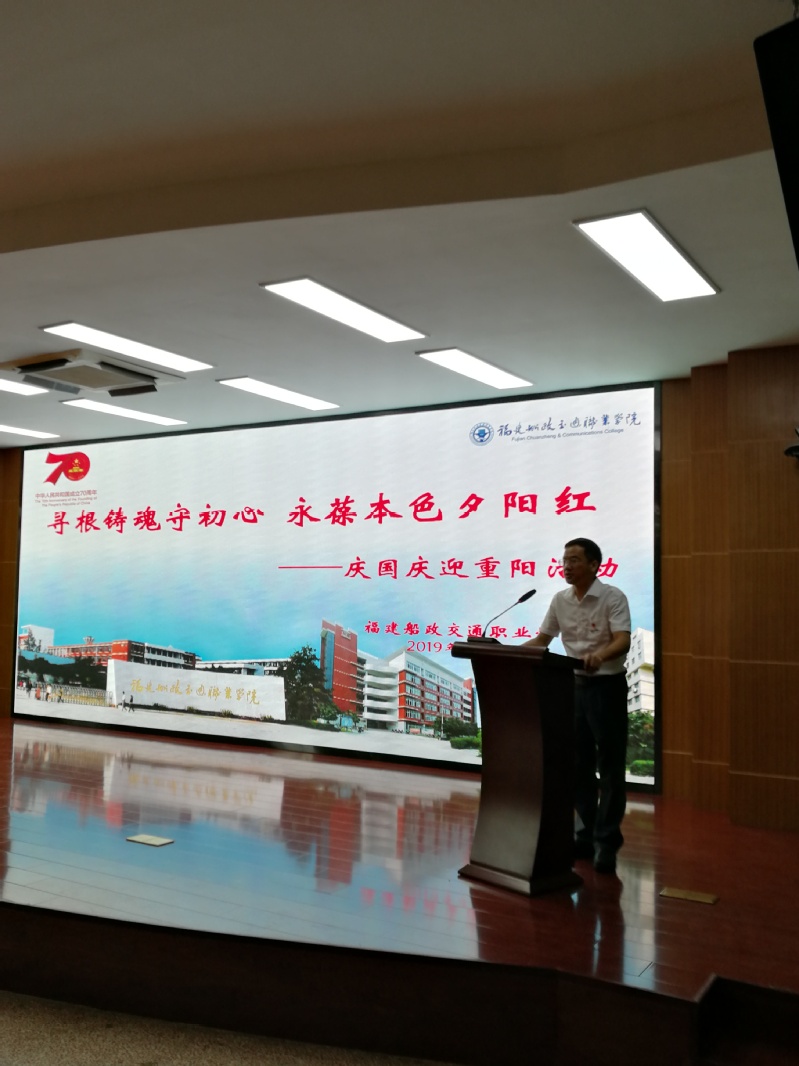 金秋送爽山河美,丹桂飄香慶輝煌,在新中國(guó)成立70周年之際,我們迎來(lái)了2019年九九重陽(yáng)節(jié)。值此雙節(jié)來(lái)臨之際,今天學(xué)院舉行了“尋根鑄魂守初心,永葆本色夕陽(yáng)紅” 為主題的慶國(guó)慶迎重陽(yáng)活動(dòng)。參加活動(dòng)的有學(xué)院黨委張海明書(shū)記、陳錦輝院長(zhǎng)、陳宜大副書(shū)記、高汝武副院長(zhǎng)、張祖柱副院長(zhǎng)、陳艷紅副院長(zhǎng),以及學(xué)院離退休教職工,離退休工作領(lǐng)導(dǎo)小組成員、關(guān)心下一代工作委員會(huì)成員。