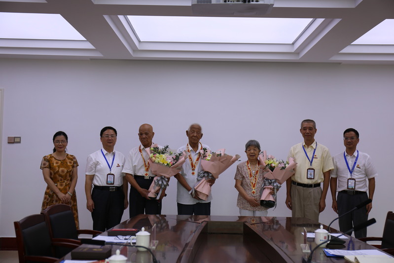 9月25日下午,在慶祝新中國成立70周年之際,學(xué)院召開了“慶祝中華人民共和國成立70周年紀(jì)念章”頒發(fā)儀式,會議由黨委副書記陳宜大主持,黨委書記張海明、院長陳錦暉、副院長陳艷紅分別為離休干部和建國前工人劉樹松、吳厚麗、項榮顯佩戴了中共中央、國務(wù)院、中央軍委頒發(fā)的“慶祝中華人民共和國成立70周年紀(jì)念章”,并送上鮮花和慰問金2000元,及時傳達黨和政府為建立新中國作出特殊貢獻的老同志的關(guān)心和愛護。張海明書記表示,先輩們付出了鮮血甚至生命的代價才迎來革命的勝利,今天幸福生活我們會倍加珍惜,在工作中我們繼承發(fā)揚老同志的優(yōu)良傳統(tǒng)和作風(fēng),關(guān)心照顧老干部、老黨員。