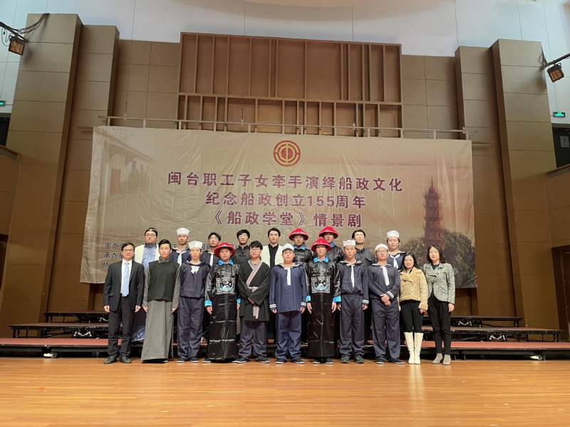 12月23日,在船政創(chuàng)立155周年之際,由福建省總工會、中國致公黨福建省委員會、中工網(wǎng)、福建船政交通職業(yè)學院、馬尾船政研究會共同主辦的《船政學堂》情景劇在福建大劇院隆重上演。《船政學堂》是與在閩臺灣職工子共同攜手演繹賡續(xù)船政百年初心,唱響“閩臺一家親”的主題樂章。福建省總工會領導柳公立副主席,中國致公黨福建省委員會副主委吳棉國、福建船政交通職業(yè)學院黨委副書記陳宜大、馬尾船政研究會會長陳悅,省臺港澳辦、中工網(wǎng)等相關單位領導出席活動。