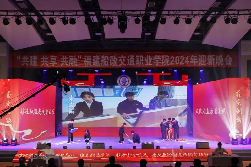 12月27日晚,我院在福道園文體中心,舉辦以“共建 共享 共融”為主題的2024年迎新晚會(huì)。學(xué)院黨委書記陳宜大,黨委副書記、院長(zhǎng)陳錦輝,京津冀滬+交通職業(yè)教育集團(tuán)聯(lián)盟的各位領(lǐng)導(dǎo)、嘉賓及我院各職能部門、二級(jí)學(xué)院負(fù)責(zé)人,師生代表等近八百人觀看了演出。