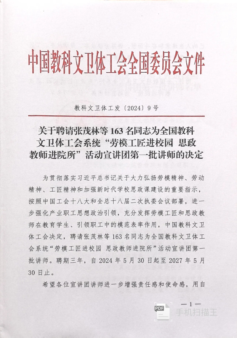 近日,中國教科文衛(wèi)體工會全國委員會印發(fā)《關于聘請張茂林等163名同志為全國教科文衛(wèi)體工會系統(tǒng)“勞模工匠進校園思政教師進院所”活動宣講團第一批講師的決定》,我院鄒澤昌老師被聘為全國教科文衛(wèi)體工會系統(tǒng)“勞模工匠進校園思政教師進院所”活動宣講團第一批講師。